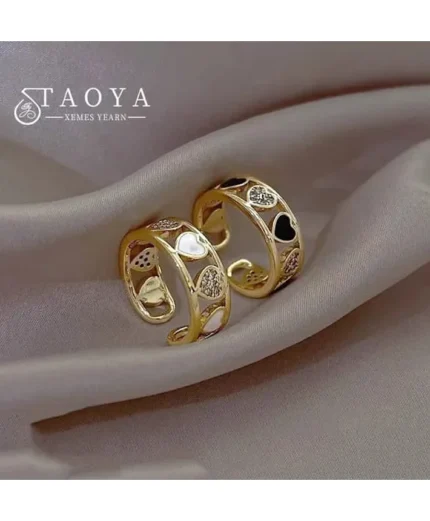 Adjustable Enamel Heart Shaped Shimmer Couple Ring Set of 2