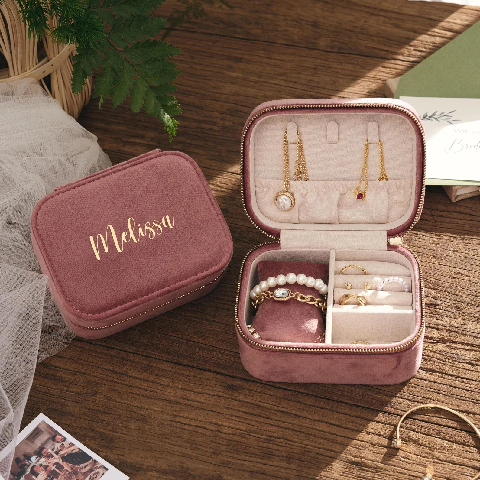 Personalized Velvet Jewelry Box, Custom Women Watch Box, Watch Jewelry Box, Travel Jewelry Box, Wedding Gift For Her, Bridal Party Gift