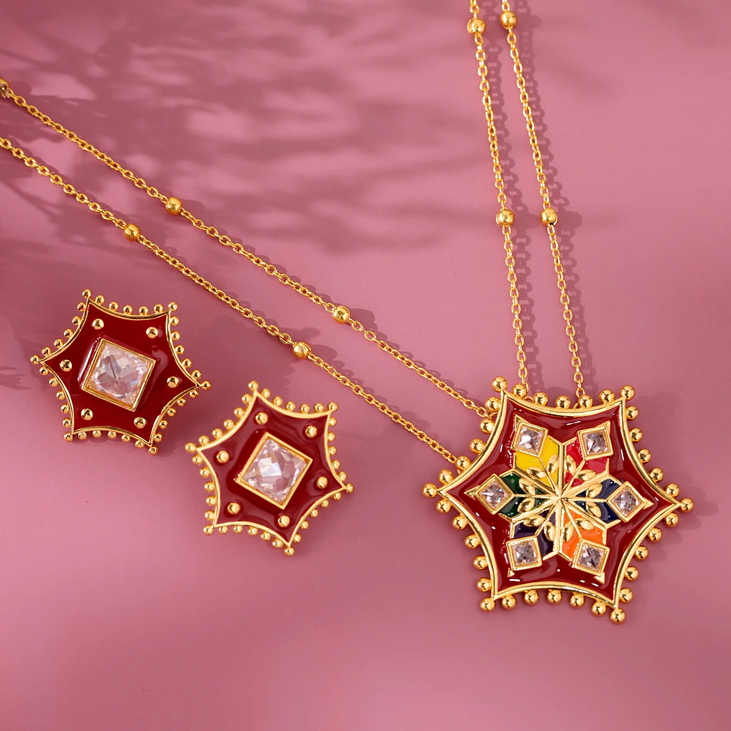 The Gota Patti Meena Sitara Necklace Set from Eliver Trades is inspired by the night sky and royal elegance. Handcrafted with meenakari artistry and sitara-style shimmer, it brings an ethereal glow to your festive or bridal ensemble.