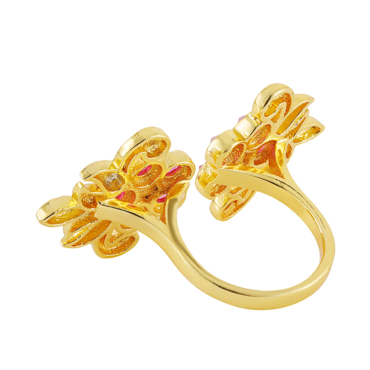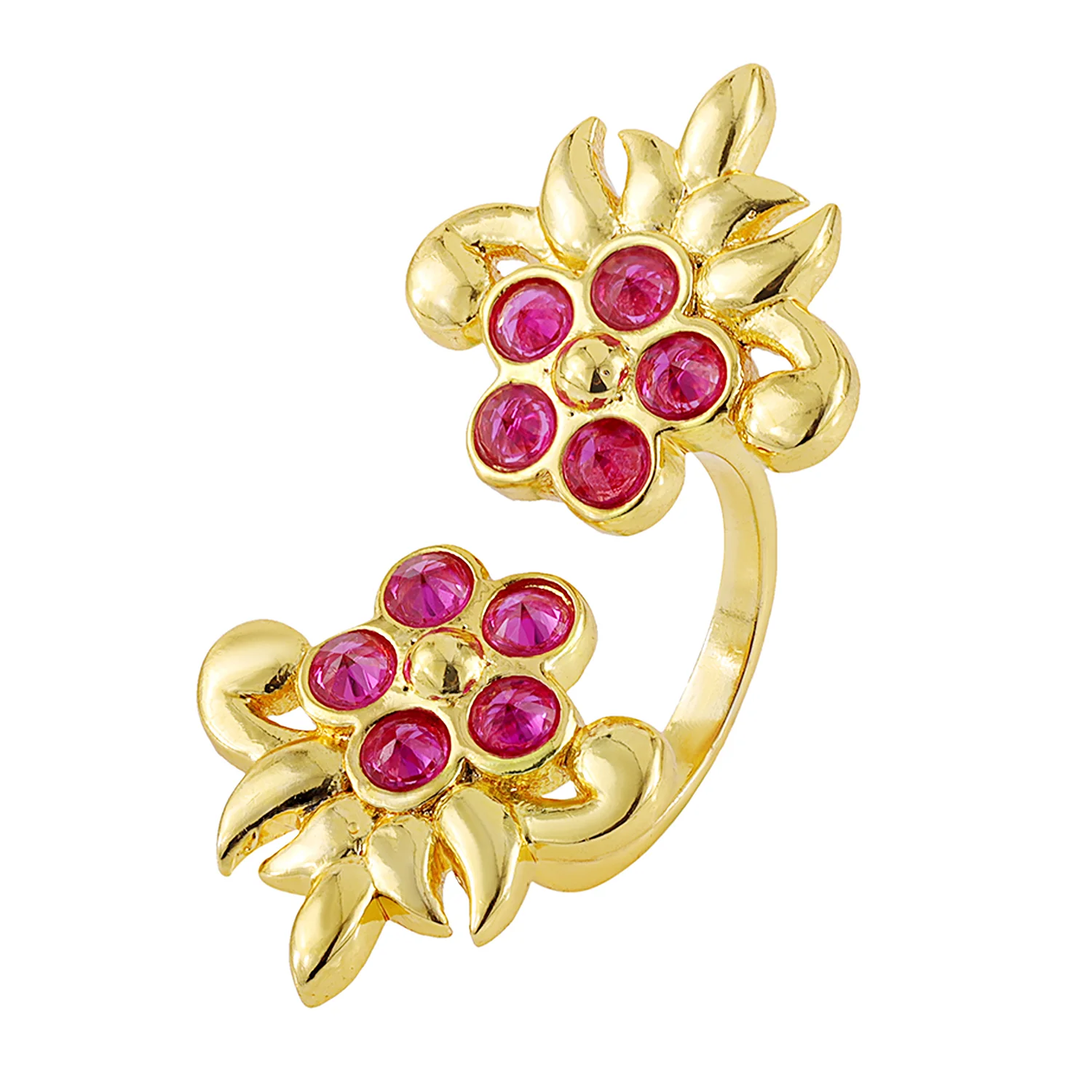 Crafted in premium brass with a radiant gold finish, this enamel ethnic ring is inspired by Rajasthan’s royal Gota Patti artistry and reborn as a modern festive jewellery ring. The floral motif with sparkling pink stones makes it a festive statement ring that pairs beautifully with lehengas, Banarasi sarees, Anarkali suits, or even a simple festive kurta. Perfect as a wedding enamel ring, ethnic wear ring, or pooja ring for women, this design embodies traditional elegance with contemporary charm. Whether you’re looking for a stylish ring, a gold ring, a statement ring, or a versatile ethnic enamel ring that suits both wedding wear and festive style, this piece is made to shine. The intricate craftsmanship and vibrant colors make it an unforgettable gift for her, a thoughtful jewellery gift for women, or a romantic gift for girlfriend. With its unique blend of heritage design and modern elegance, this ethnic fashion ring ensures you look royal at every occasion, be it weddings, pujas, or festive gatherings.