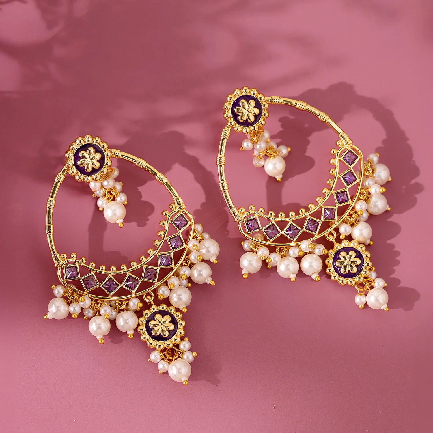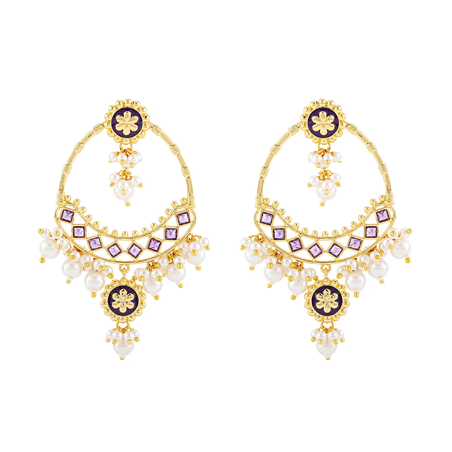 Eliver Trades’ Gota Patti Shahi Meena Chandbali Earrings combine royal meenakari detailing with classic gota patti art. Their elegant curves, hand-painted colors, and fine golden touch create a royal vibe that perfectly completes your ethnic outfit.