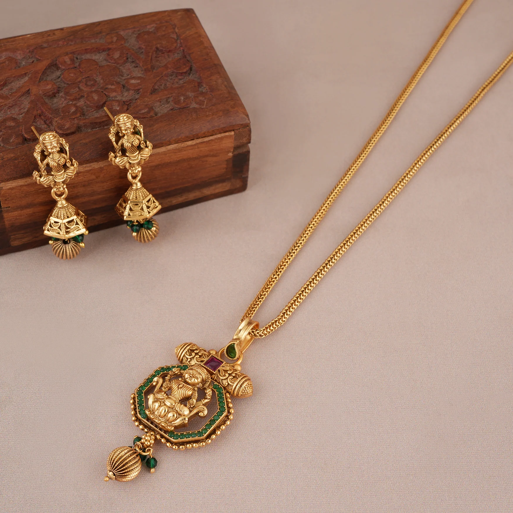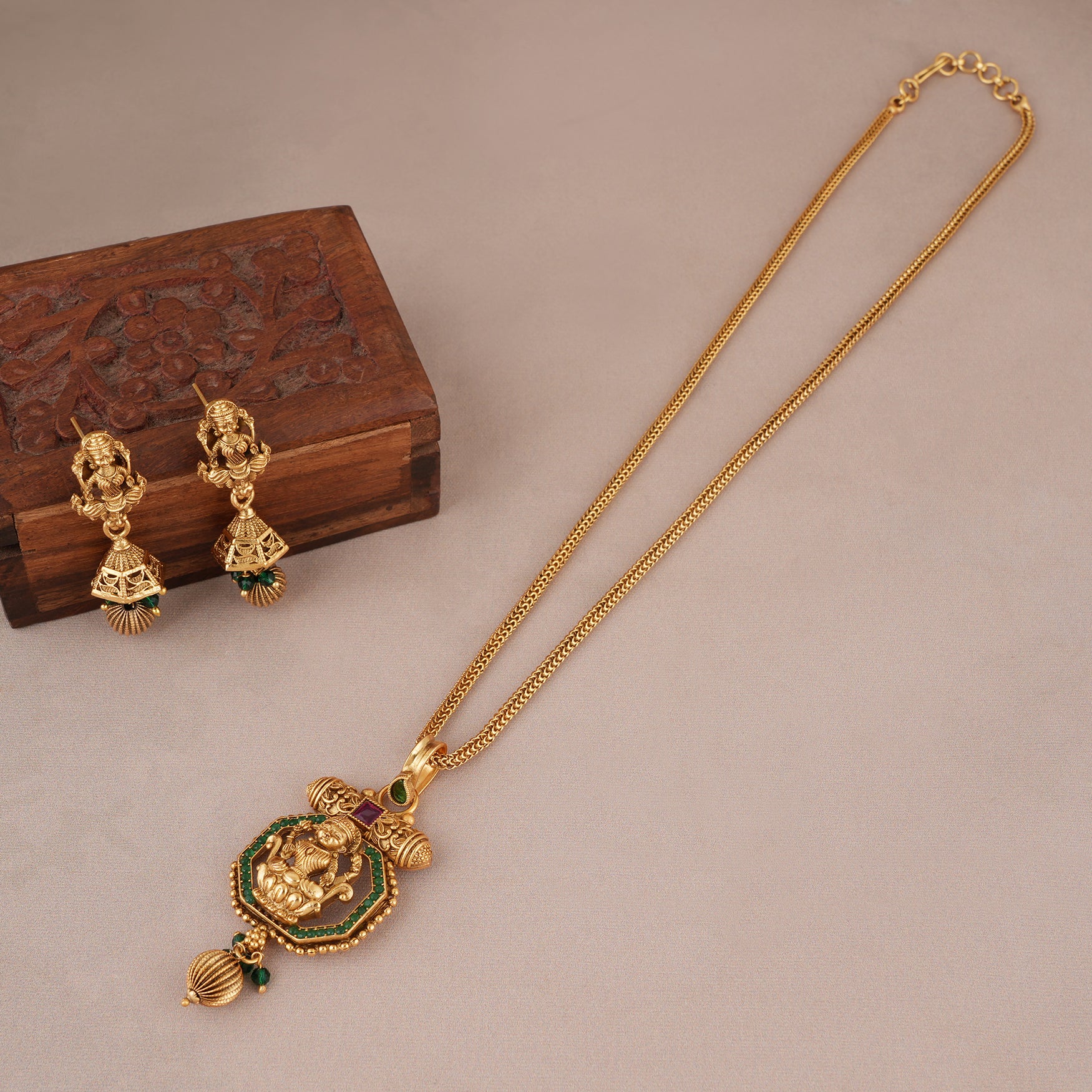 Be the first to review “Long antique gold ma lakshmi pendant set”