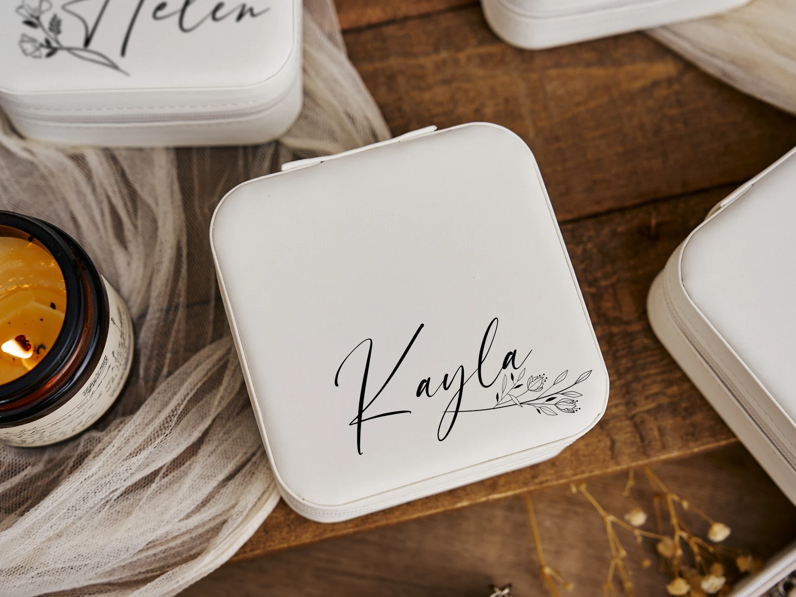 Looking for a unique bridesmaid gift? This Personalized Birth Flower Travel Jewelry Case is the perfect way to show your endless appreciation for your bridesmaids. It’s not just a gift, it’s a wedding memento they can cherish for a lifetime, so every time they open the box, they can relive the warmth and emotion of your wedding day.