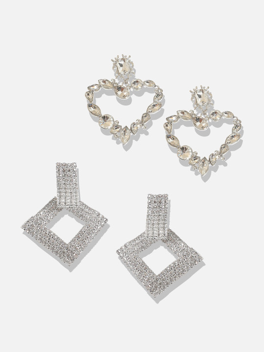 Set Of 2 Silver-toned contemporary drop earrings, silver-plated, has artificial stones