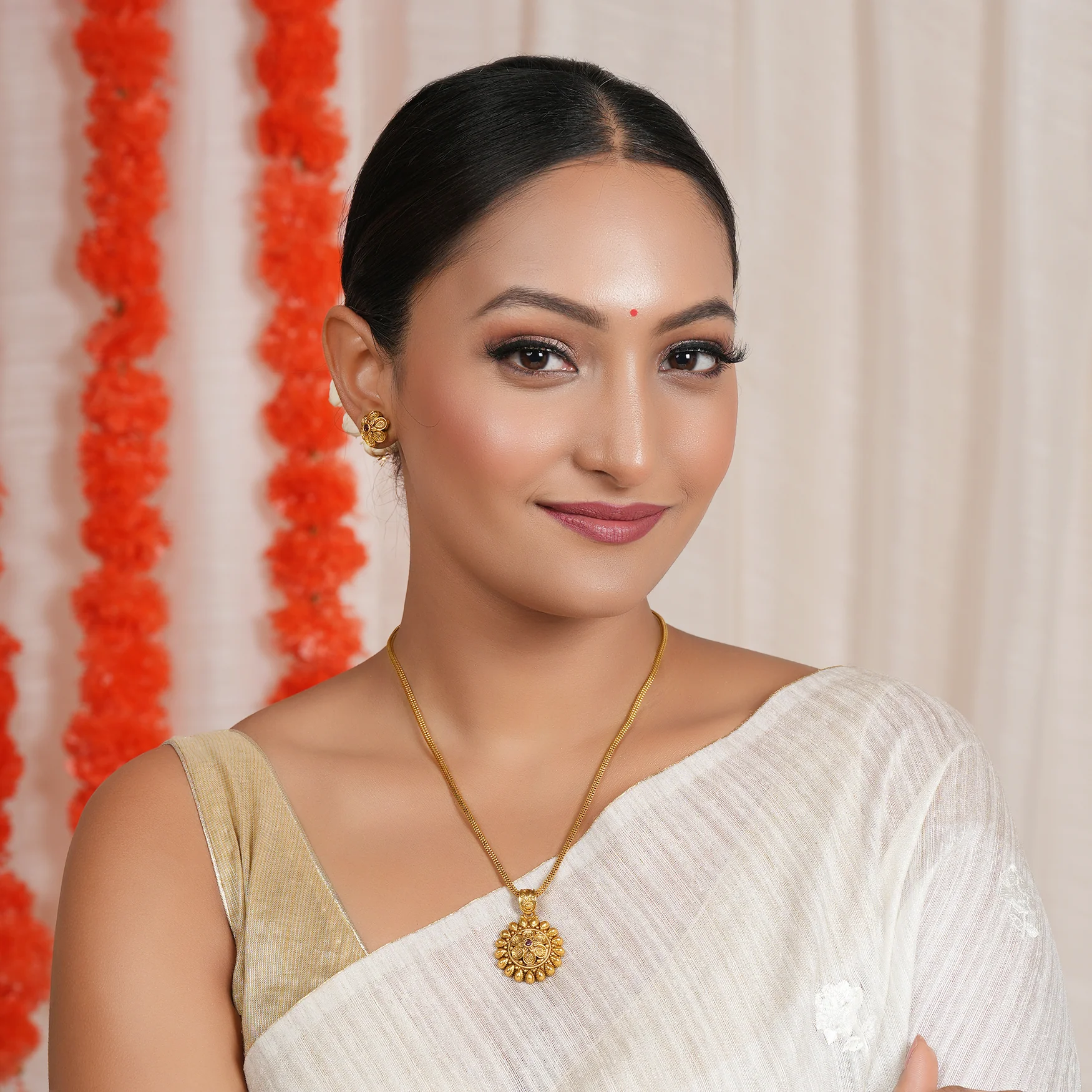 Stunning elegant floral antique gold pendant set is made of brass alloy with gold plating.