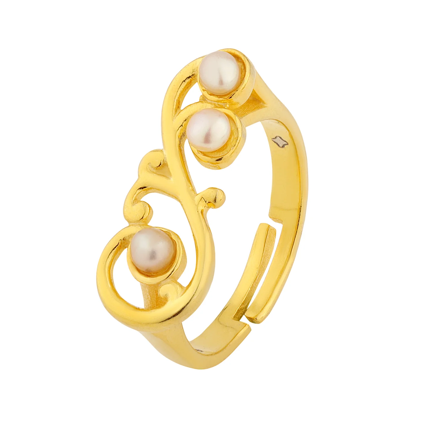 This ring symbolizes adaptability, growth, and the strength to flourish in every environment. Crafted in 925 sterling silver with a luxurious yellow gold plating and protective E-Cote finish, the design features flowing vine-like curls accented with luminous pearls, adding a timeless feminine touch. Its smooth and minimalistic form captures the balance between modern sophistication and nature-inspired artistry. Perfect as daily wear jewellery, this ring pairs effortlessly with both casual and professional workwear, while still being elegant enough for evening occasions. Whether worn solo for subtle elegance or styled with other jewellery, the Jasmine Curl Ring is designed to suit every versatile personality. A thoughtful gift for women and a meaningful gift for your lover, this piece also makes a charming option for silver gifting on birthdays, anniversaries, or festive occasions.
